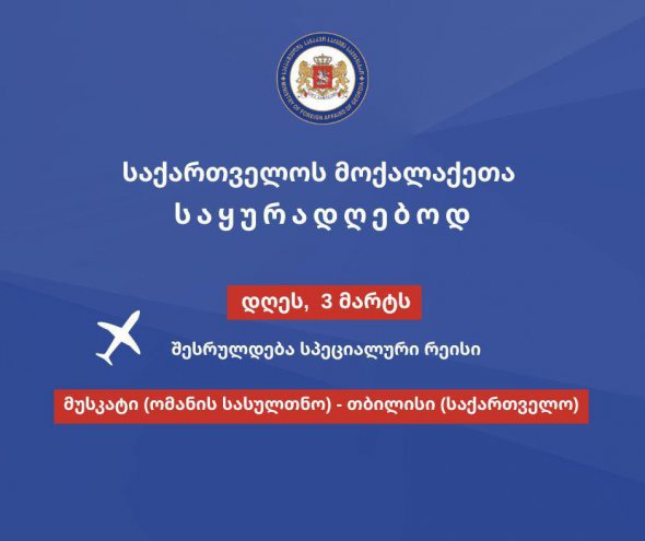 საქართველოს საგარეო საქმეთა სამინისტრომ სპეციალური რეისების შესრულებასთან დაკავშირებით გუშინ გაავრცელა ინფორმაცია.