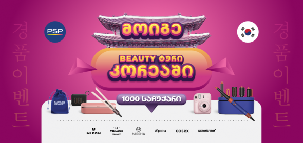 PSP-ში K-Beauty გათამაშებაში 1000 პრიზთან ერთად შეგიძლიათ მოიგოთ სამოგზაურო ტური სამხრეთ კორეაში!